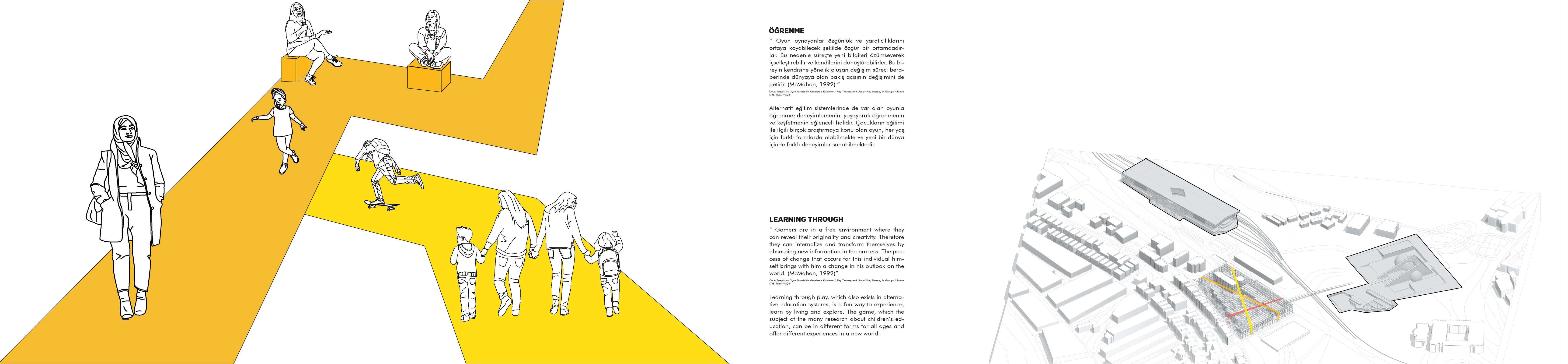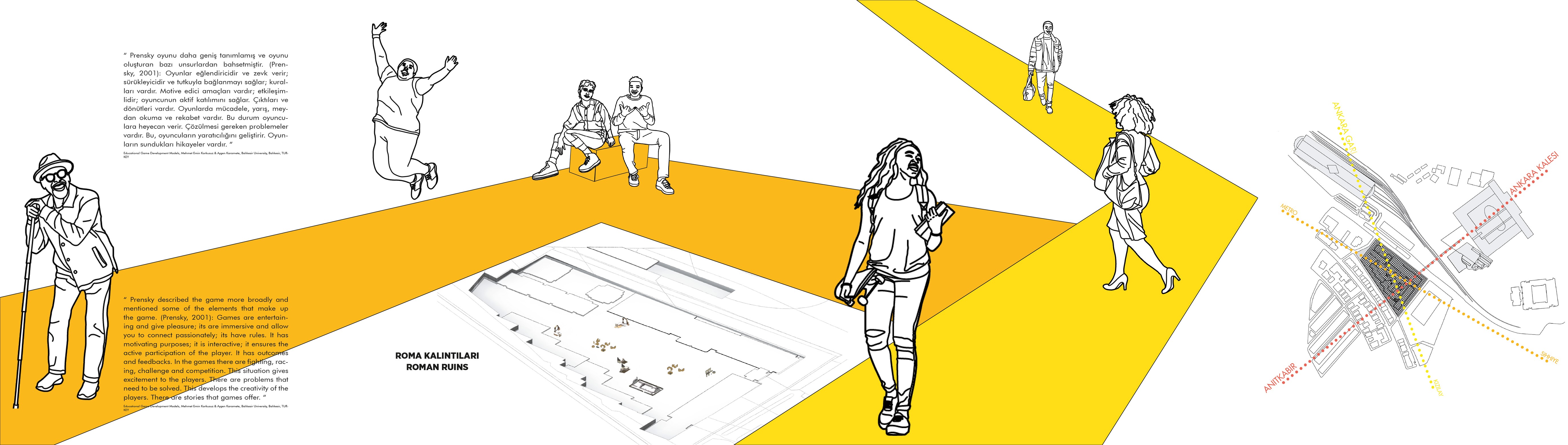 The project consisted of two phases and productions were made on the venues of spectacle and carnival. In the second stage, an alternative education area has been designed, located in the gaps in the Gazi University Maltepe Campus area. Considering the various age groups that the area accommodates, an education area that open to the general public has been established. Experience axes that also reveal the Roman ruins on the ground are designed by creating an atmosphere that creates its own world coming from the concept of the game.