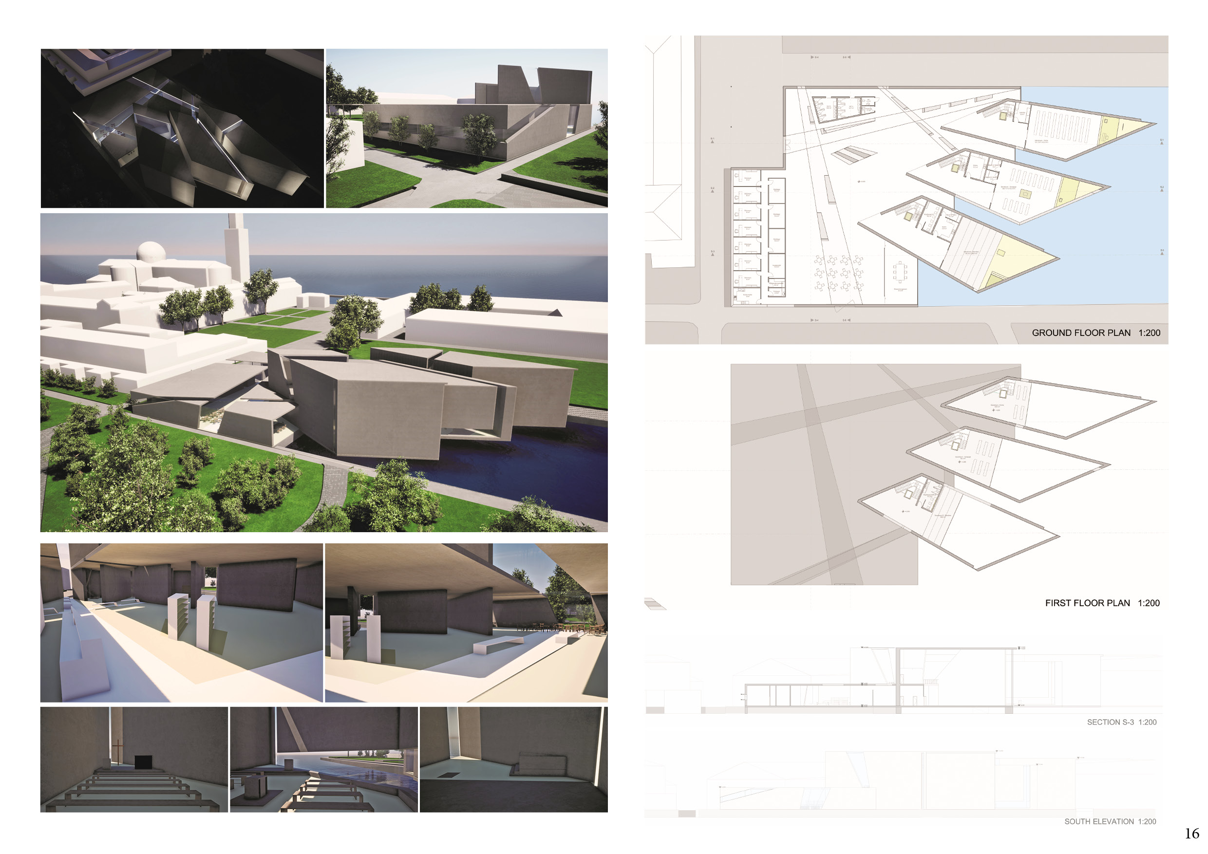 The project is the House of Three Religions. Judaism, Christianity, and Islam are in the same place. These three religions believe in the existence of the one unique God and have sacred books. However, each one believes in its own way. The initial idea was a line on the facade that starts from the earth and ends on the earth. This line continues around the mass, but it has different directions and styles according to the religions. Additionally, in some places, the line separates into thin lines when they clash. In the process of the project, this idea changed somewhat due to architectural reasons such as functionality and aesthetics. The line that starts from the east facade also ends at the entrance roof.