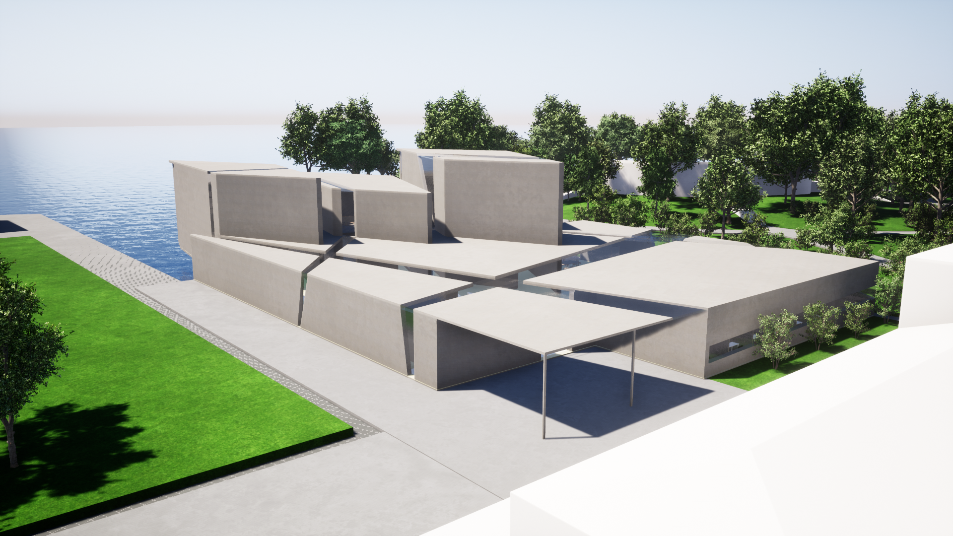 The project is the House of Three Religions. Judaism, Christianity, and Islam are in the same place. These three religions believe in the existence of the one unique God and have sacred books. However, each one believes in its own way. The initial idea was a line on the facade that starts from the earth and ends on the earth. This line continues around the mass, but it has different directions and styles according to the religions. Additionally, in some places, the line separates into thin lines when they clash. In the process of the project, this idea changed somewhat due to architectural reasons such as functionality and aesthetics. The line that starts from the east facade also ends at the entrance roof.