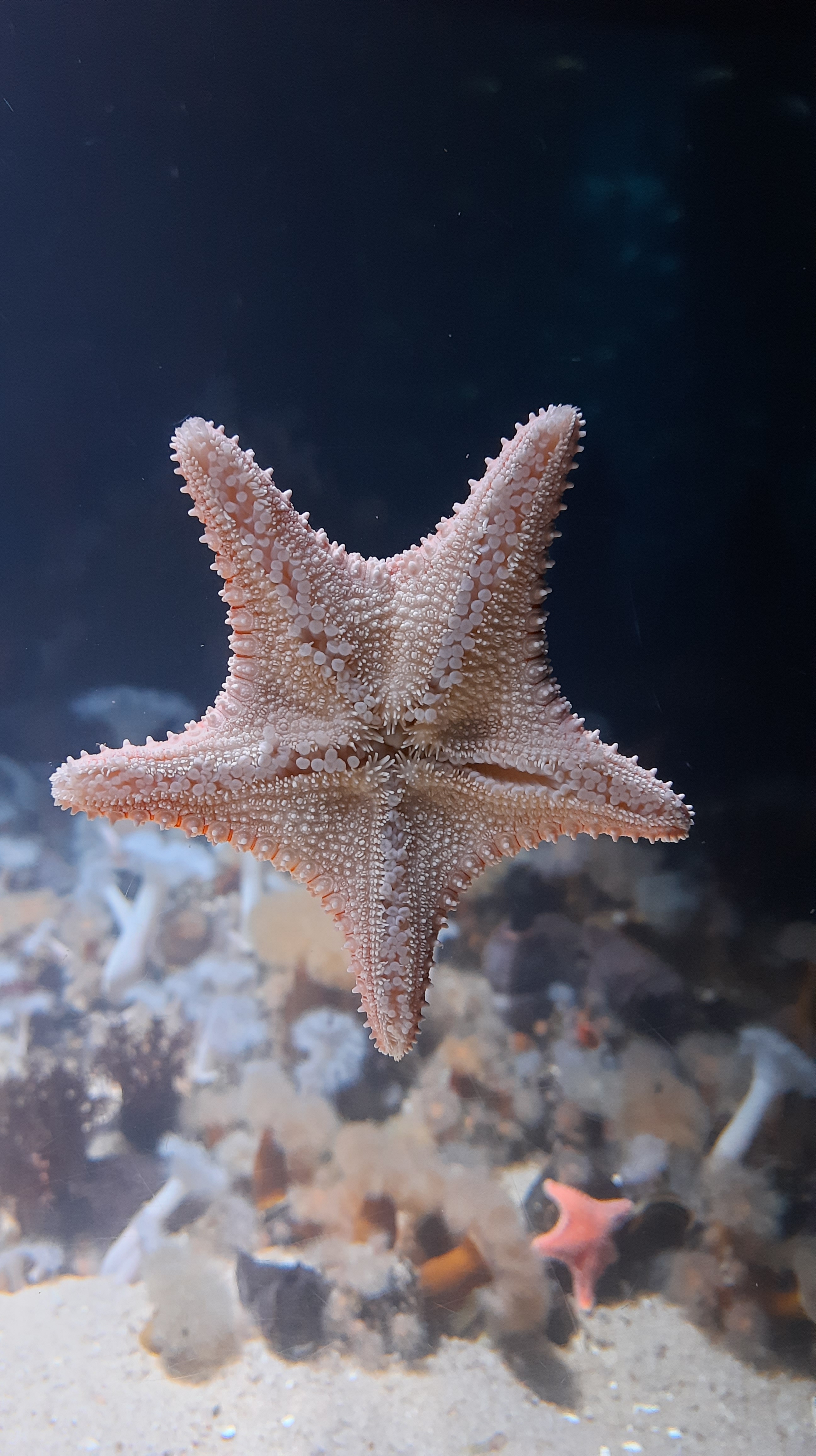 İlk girdiğinizde üstünüzde büyük bir hayvan iskeleti sizi karşılıyor, merdivenlerden yukarı çıkıp müzenin sizin için çizdiği gezi yolculuğuyla hayvanlar alemine ve denizcilik dünyasına adım atmış oluyorsunuz. Müzede çeşitli penguenlerin, deniz analarının, fok balıklarının, kartal karga gibi kuşların, su samurlarının, balıkların, ahtapotların ve daha çok çeşitli hayvanın birebir ölçekli modellerini görüyorsunuz. Penguenlerden bazıları ve iki cins kargadan biri büyüklüğüyle beni ilk başta fazlaca şaşırttı doğrusu. Bunun dışında suda var olan kimyasal olaylardan, hayvanlar, denizdeki algler ve benzeri pek çok canlı ile ilgili de görseller, bilgiler, gerçek veya modellenmiş örnekleri de mevcuttu. Model dünyasının ardından bizi çeşit çeşit balıkların, deniz canlılarının olduğu akvaryumlar karşıladı. Yılan balıkları, vatozlar, köpek balıkları, deniz yıldızları, mercanlar, deniz atı, yengeçler ve daha pek çok canlı. Benim görünce en mutlu olduğum canlılardan biri nedense mini karideslerdi. Neşeli Ayaklar animasyon filmindeki o minik karideslerin aynısını karşımda görüp gülümsedim. Yine minik deniz anaları da büyükleri kadar etkileyici ve güzeldi. Yassı bir balığın yat yatmış gibi yüzmesi de bir garip görünüyordu doğrusu. Deniz yıldızları, mercanları, deniz dünyasının birbirinden farklı, kemiksi olanlardan yumuşakça olanlara kadar rengarenk canlıları ile dünyada varlığından bir haber olduğumuz yaratılan varlıkları görmek çok güzeldi. Oturup deniz yıldızının camdaki hareketini izlemek… keşfedecek, hayret edecek, şükredecek o kadar çok şey var ki.